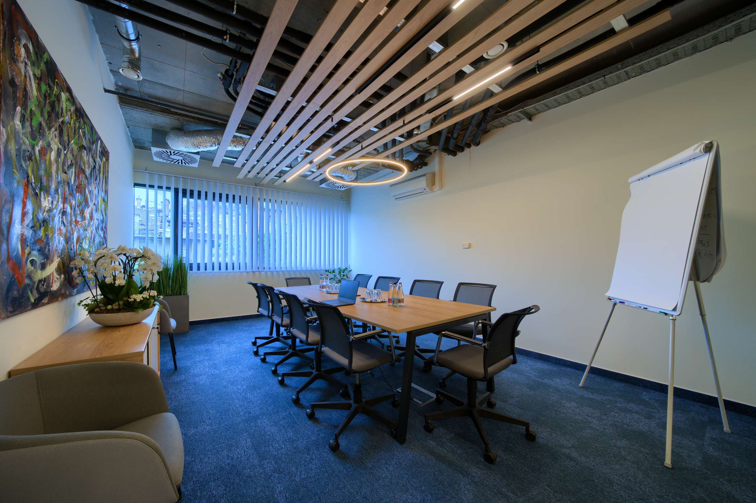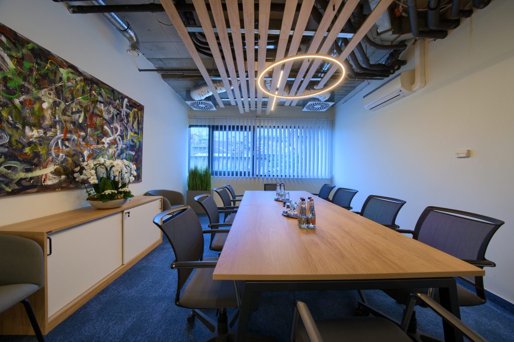 A tárgyalók modern, elegáns belső tere professzionális hátteret biztosít. Prezentációs TV-t használhat, gyors internet, nyomtató és zavartalan üzleti környezet áll rendelkezésre.